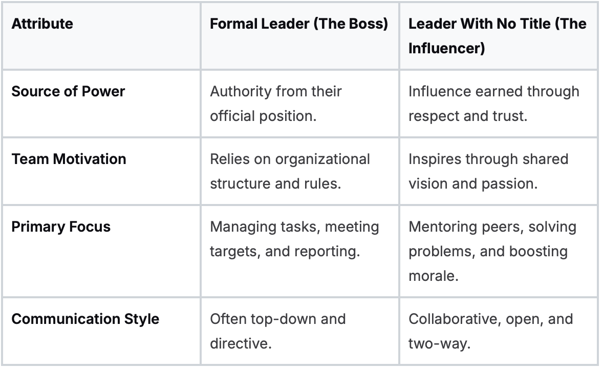 While formal leaders are essential for structure, the leaders with no title are the ones who often create a culture of genuine collaboration and drive innovation from the inside out.
